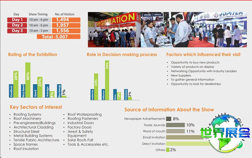 中欧世界展会网是一个提供全球展会门票购买、展位申请、设计搭建的一站式服务平台,为您办理印度屋面展展位预订业务。
