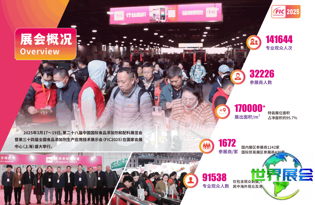 中国上海国际食品添加剂和配料展FIC汇集了全球1,552家参展企业,吸引了105,160名专业观众共同关注食品添加剂与配料产业的最新趋势。无论展会规模还是参展商数量均将创下历史纪录。FIC将通过展览展示、论坛研讨、企业新品推介等超过60场活动,全面呈现食品添加剂与配料领域的新技术、新成果与新应用,汇聚海内外优质创新资源,推动后疫情时代食品工业实现高质量跨越式发展。