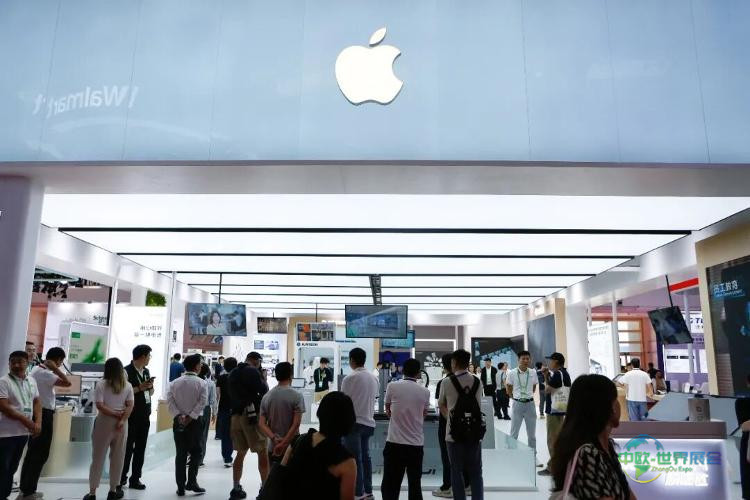 图为在第三届中国国际供应链促进博览会上的苹果公司展台。新华社记者丁洪法摄