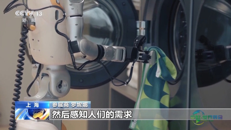 总台记者 陈阳:我们现在来到了“无家务之家”。什么是无家务之家?请看沙发上有一条围巾,机器人能否将它放入洗衣机清洗?