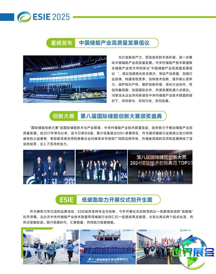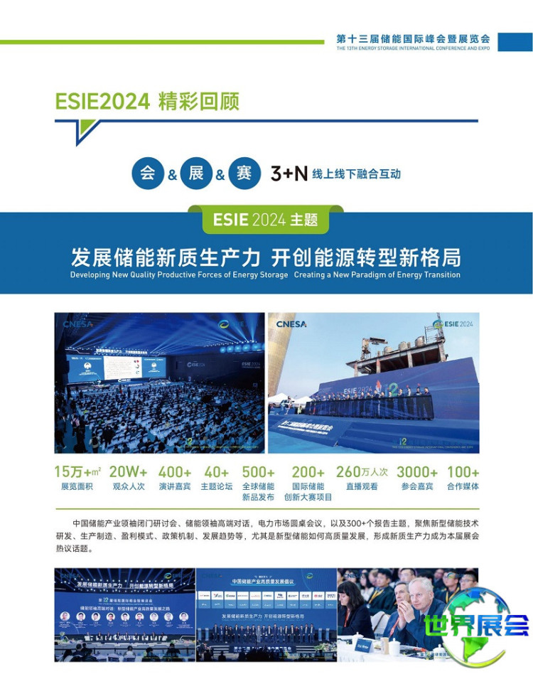 北京国际储能展览会-北京储能峰会(ESIE)凭借其专业视野和强大影响力,已成为全球公认的顶级储能品牌展会,其每年的开幕报告、高峰对话以及分论坛议题均会成为行业讨论的焦点。