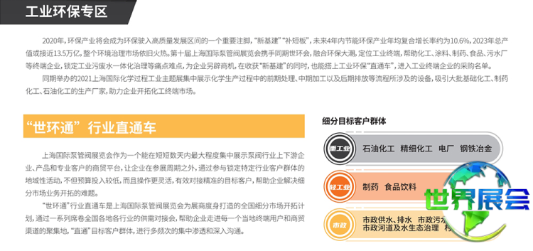 为了向参观者提供更精准的产品展示,上海国际泵阀展览会(FLOWTECH CHINA)特别划分了工业泵阀、化工泵阀、市政管道以及电机节能等多个专题展区,旨在提升观众的观展感受。
