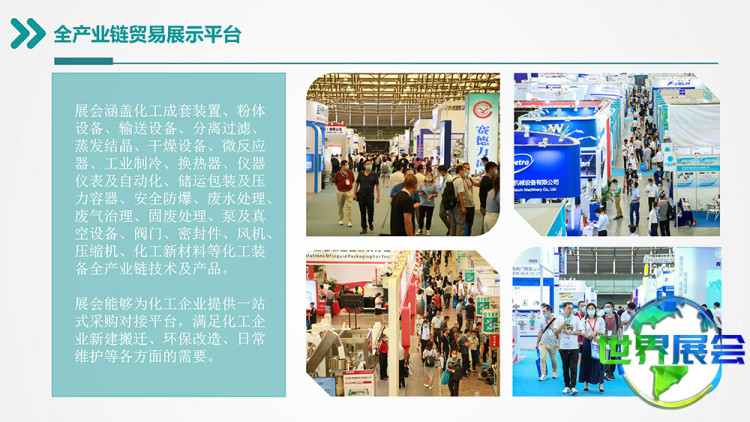 上海国际石油和化工自动化及仪器仪表展览会(CIECA)将同期举行上海国际石油和化工技术装备展览、上海国际防爆电气技术设备展览、上海国际石油和化工安全防护及消防应急管理展览,全面呈现石化与化工产业链最前沿的技术与设备。
