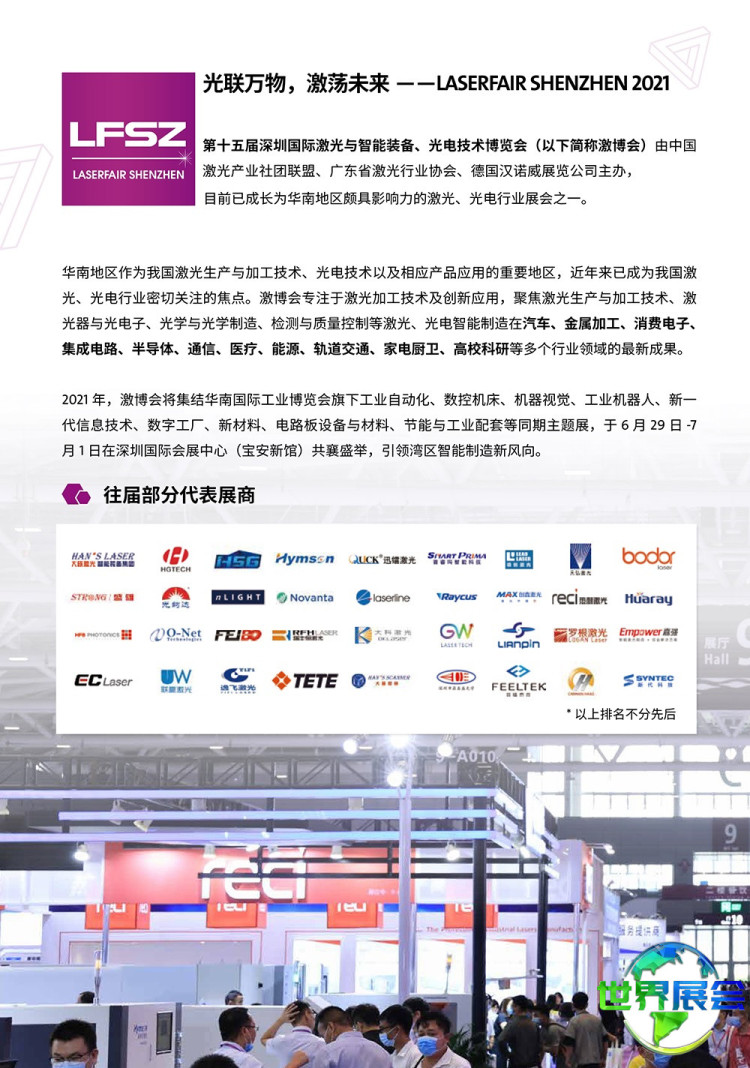 深圳国际激光技术展览会(LASERFAIR SHENZHEN)是华南国际工业博览会框架内专注于“激光与智能装备”领域的专业展览。该展会由中国激光产业社团联盟、广东省激光行业协会携手德国汉诺威展览公司联合主办。