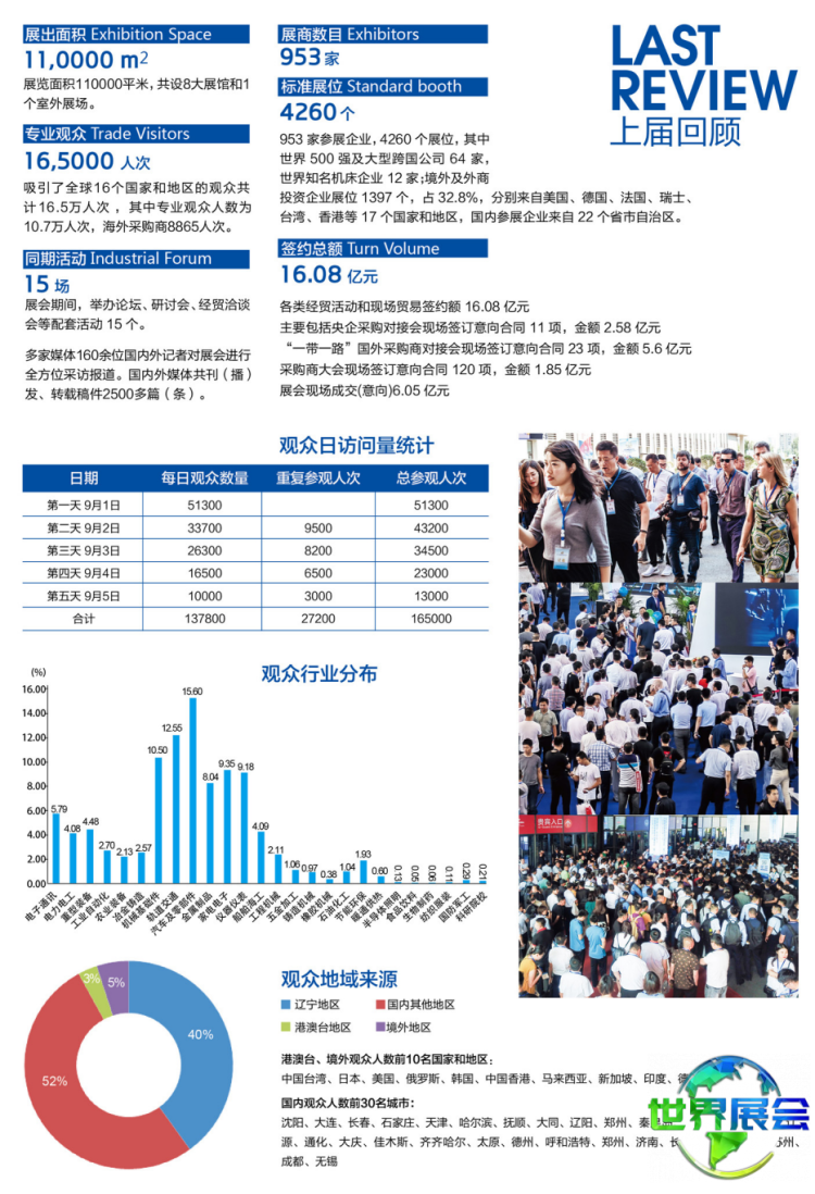 上届中国沈阳国际装备制造业展览会-沈阳制博会(CIEME)总展出面积达11万平方米,汇聚了1200家参展企业,接待观众13万人次。本届展会将举办新产品研讨会,通过新品推介与技术交流,更全方位地展示新产品的性能与吸引力。