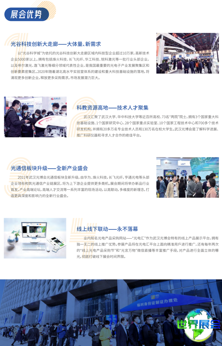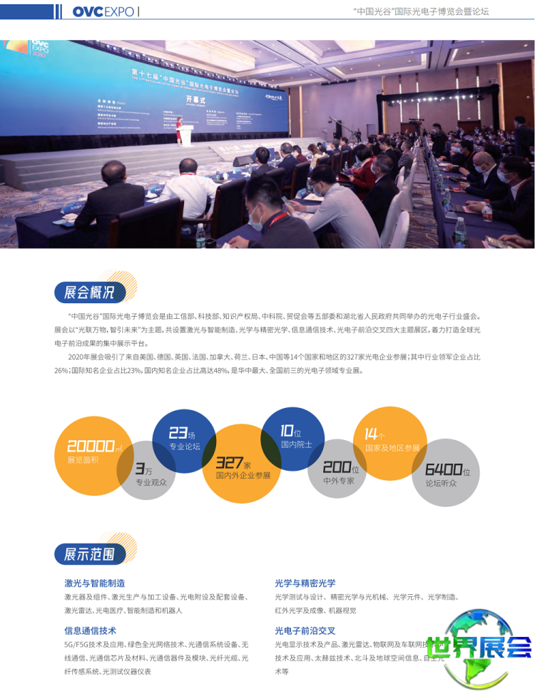 中国光谷国际光电子博览会(武汉光博会,OVC EXPO)是见证并驱动光电信息产业实现跨越式成长的重要平台。武汉光博会正凭借不断的创新精神和开放姿态,照亮光电子技术未来的广阔前景。