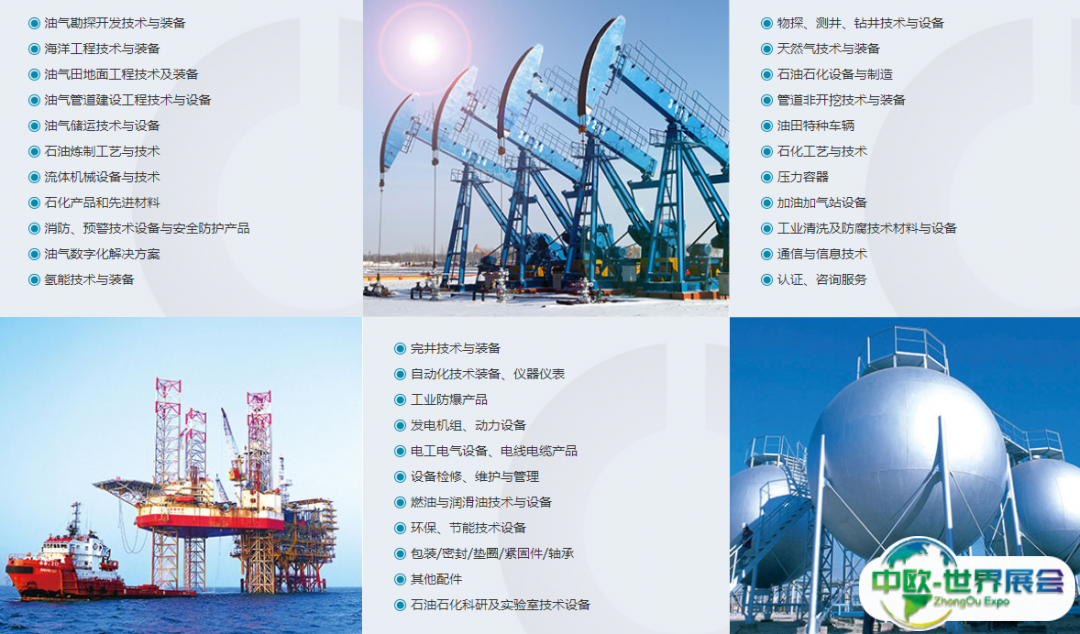 油气勘探、开发与生产装备;物探、测井、钻井技术与设备-陆上/海上;油气田地面技术设备;石油石化设备与制造;自动化技术装备、仪器仪表;DCS、PLC控制系统和现场总线;油气管道建设工程技术和设备;发电机组等动力机械设备;油田特种车辆;工业防爆产品;电工电气设备、电线电缆产品;石油石化科研及实验室技术设备;石油炼制工艺与技术;石化工艺与技术;设备检修、维护与管理;流体机械设备与技术;燃油与润滑油技术与设备;销售系统及设施;石化产品和先进材料;环保、节能与安全管理;消防报警设备、工业安全及劳保用品;工业清洗及防腐技术材料与设备;卸装与包装技术;通讯及信息系统管理、电子商务