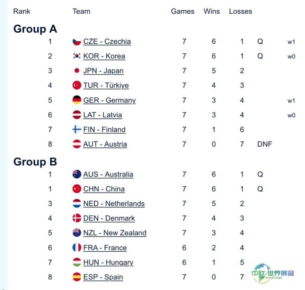 在之前的小组循环赛中,中国混双组合曾取得六场连胜,一度位居小组榜首。然而在第七场也是最后一场循环赛中,他们以5比6惜败于世界排名第一的澳大利亚队。所幸同时进行的另一场比赛,新西兰队以8比5击败荷兰队,这使得中国队凭借少一场败绩的优势,超越荷兰队,最终位列本次资格赛B组第二名。