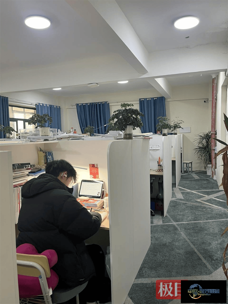 与山里那种“不打扰”的备考模式不同,这家位于市区的自习室会提供“主动式服务”。中心配备了多名管理员,为学生提供一对一的服务,还会组织考勤打卡、定期模拟考试,帮助学生保持良好的备考节奏。