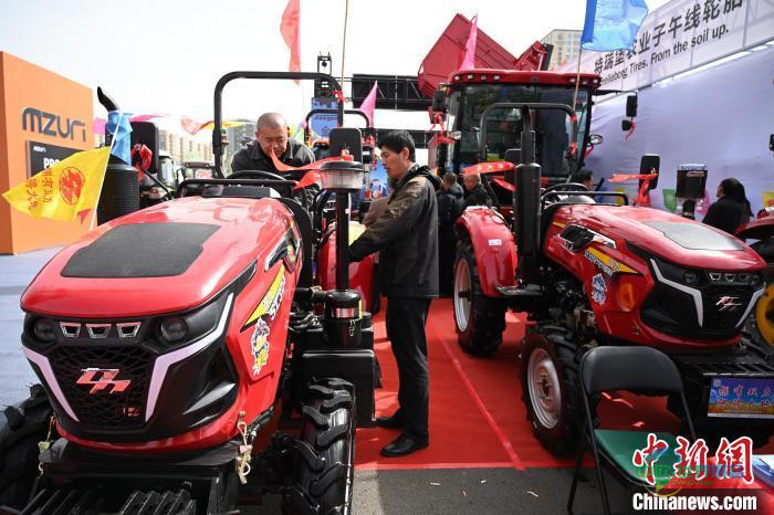 3月26日,内蒙古呼和浩特市,参观者正在试驾农业机械。同日,第三十六届内蒙古农业博览会在内蒙古国际会展中心启动。博览会展览面积共计5万平方米,展位逾1500个,汇聚了全国28个省区市的900多家企业及科研机构。中新社记者 刘文华 摄