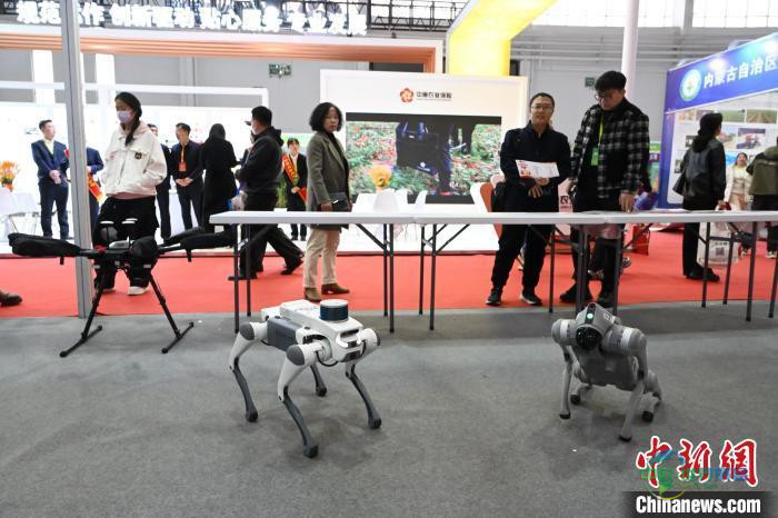 3月26日,在内蒙古呼和浩特市,一款用于农业巡检的机械狗在博览会上首次亮相。当天,第三十六届内蒙古农业博览会在内蒙古国际会展中心正式启动。本届博览会展览总面积达到5万平方米,设置了超过1500个展位,吸引了来自全国28个省、自治区、直辖市的900多家企业和科研单位参与。中新社记者 刘文华 摄