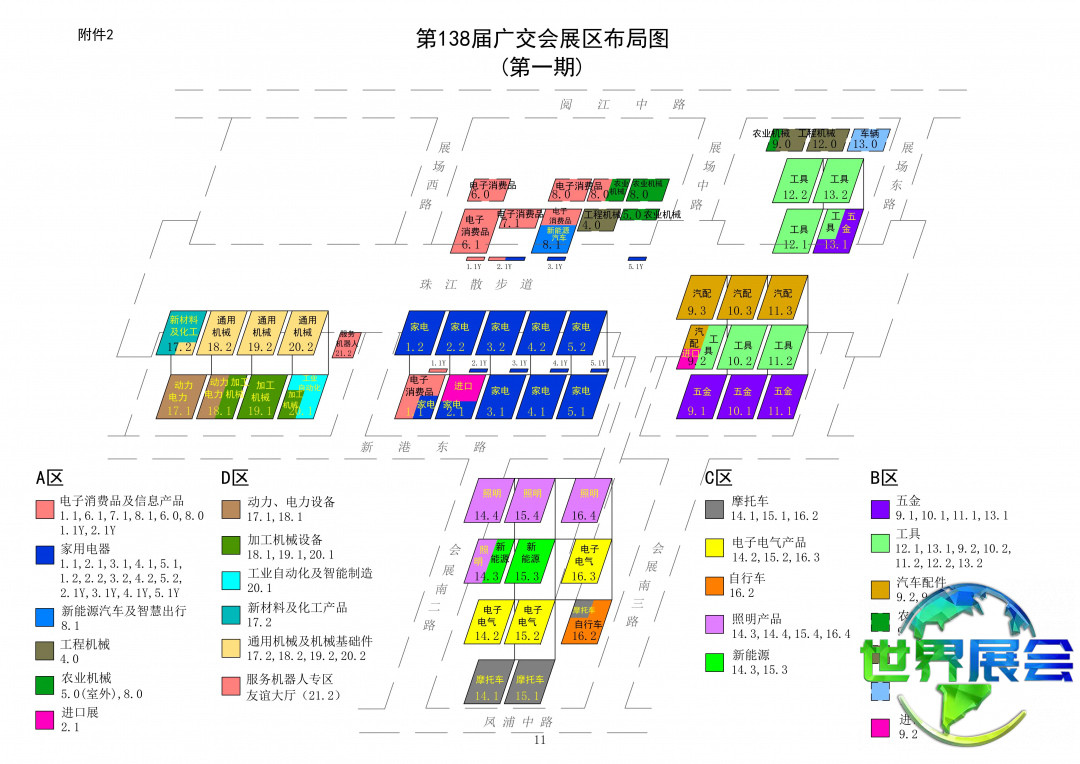 大型机械及设备、小型机械、自行车、摩托车、汽车零部件、化工产品、五金制品、工具、户外车辆、户外工程机械、家用电器、消费电子产品、电子电器产品、计算机及通信产品、照明产品、建筑及装饰材料、卫浴设施、进口产品展区